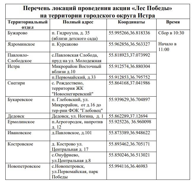 30 апреля в городском округе Истра состоится эколого-патриотическая акция «Лес Победы». Об этом в своём аккаунте истринцев проинформировала глава округа Татьяна Витушева.