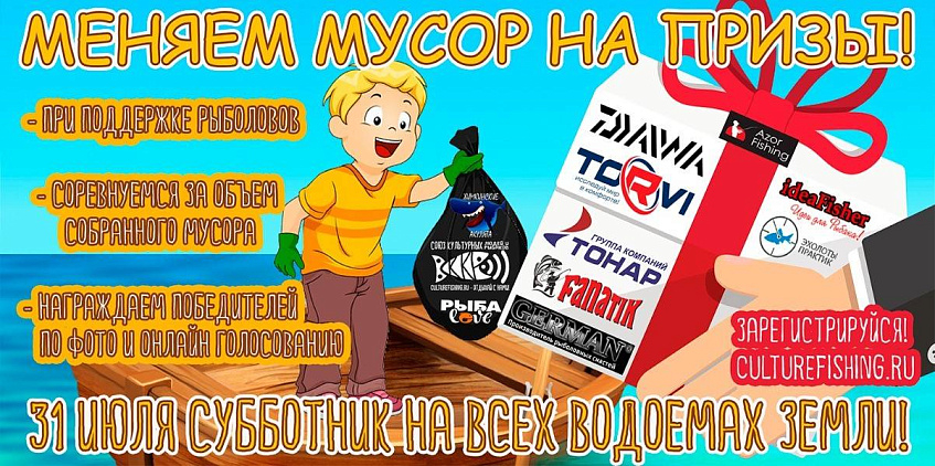 Кстати, мусорные мешки будут менять на призы. По присланным фото и видео на почту culturefishing@culturefishing.ru «Союз культурных людей и рыбаков» определит победителей по объёму собранного мусора. Подарки отправят почтой в любую точку России и страну мира!