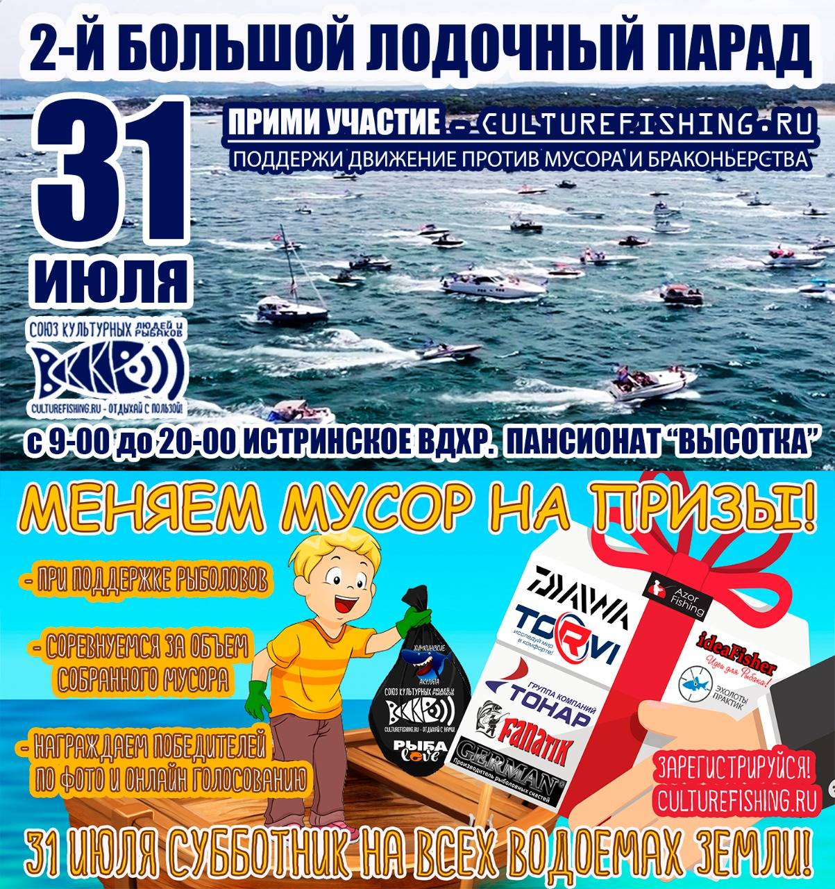 31 июля рыболовы и все, кто хочет сделать наш мир хоть чуточку чище, соберутся на Истринском водохранилище и очистят берега от мусора. Место встречи: городской округ Истра, д. Дьяково, пансионат «Высотка».