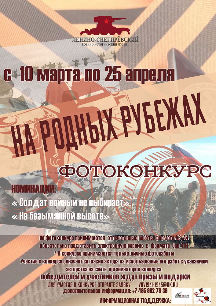 Накануне праздника Ленино-Снегирёвский военно-исторический музей предлагает всем желающим принять участие в фотоконкурсе "На родных рубежах".