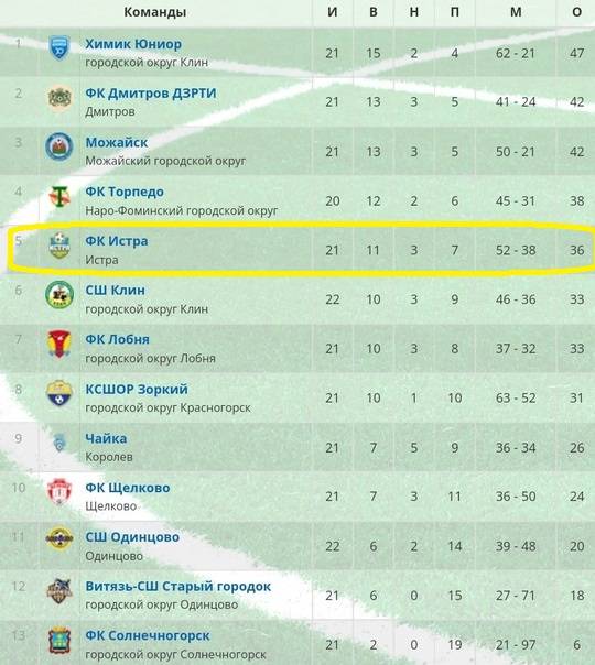 Футбольные новости: ФК «Истра» спустился на пятую строчку турнирной таблицы