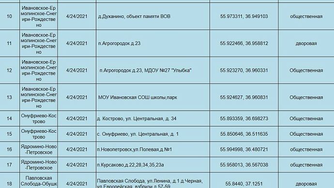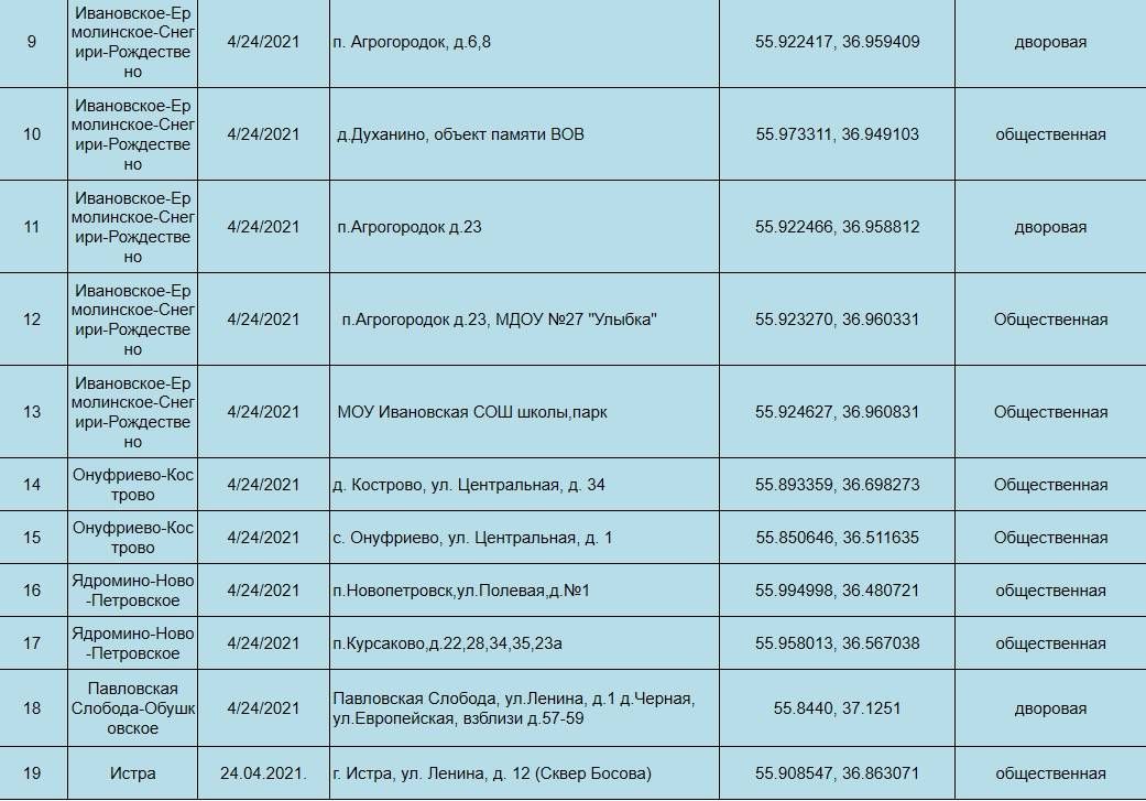 Адреса, где запланирована уборка в Истринском округе, можно посмотреть здесь.