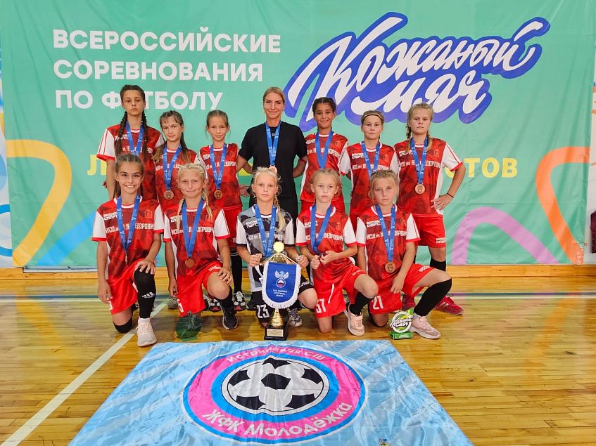 Команда Истринской спортивной школы имени Н. Федорович завоевала бронзовые медали на всероссийских соревнованиях по футболу «Кожаный мяч – Лига юных футболистов 2025» среди девочек 2014-2015 годов рождения.