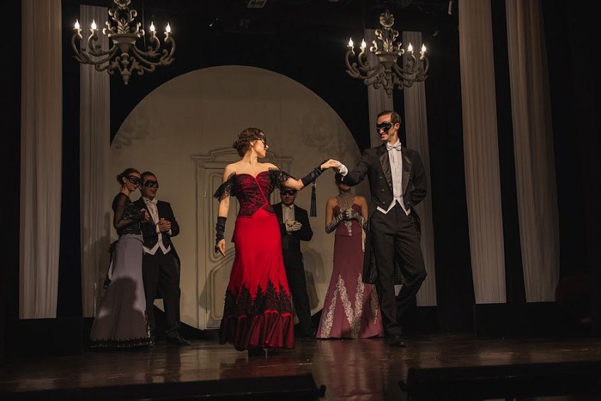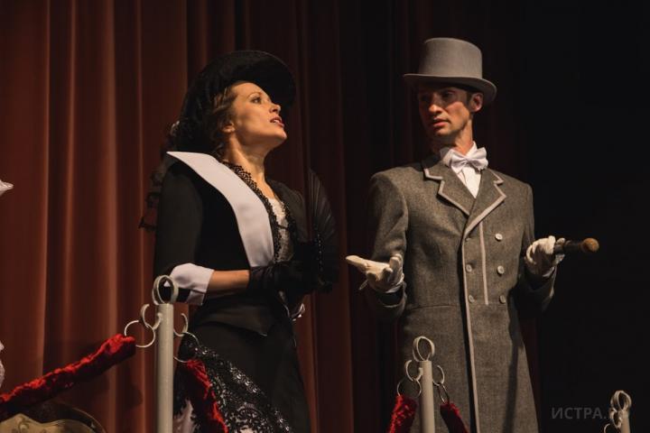 На фото: Татьяна Мирова, артисты Денис Ясик и София Елфимова в спектакле "Анна Каренина"
