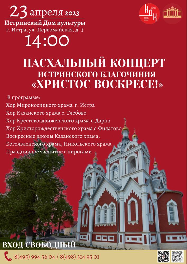 23 апреля, в воскресенье, в 14.00 в Истринском Доме культуры пройдёт праздничный концерт «ХРИСТОС ВОСКРЕСЕ».