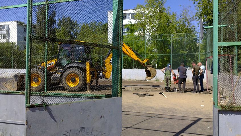 Побывав на спортивной площадке и пообщавшись с представителями организации, занимающейся устранением аварии на канализационной сети, мы убедились, что ремонтные работы действительно завершены, однако до благоустройства руки у соответствующих служб пока не дошли. На спортивной коробке предстоит восстановить покрытие и отремонтировать борт.