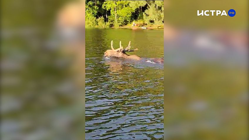 Лось решил переплыть Истринское водохранилище (видео)