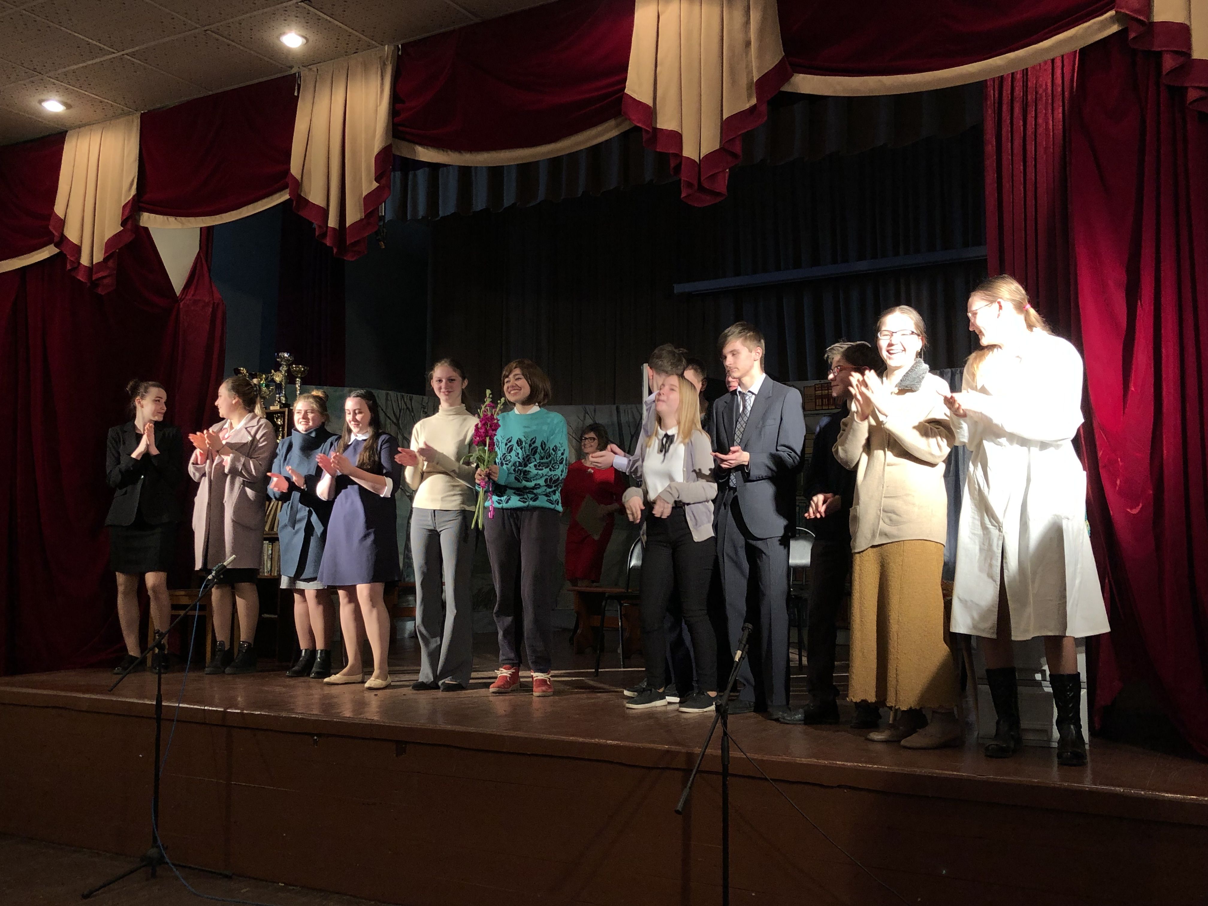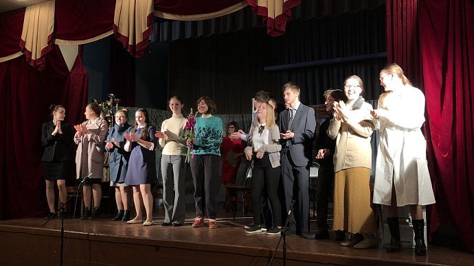 Спектакль собрал полный зал, среди зрителей — выпускники театральной студии, в том числе те, кто стоял у её истоков 17 лет назад.