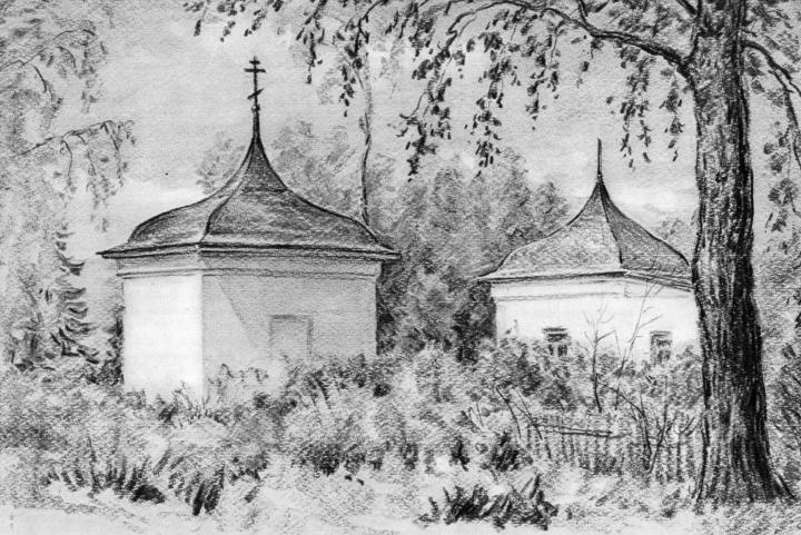 Часовня и сторожка в 1991 году. Фотография А. Шатохина