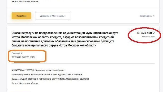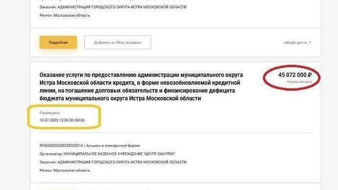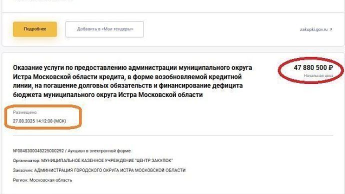 Очередной кредит в 190 миллионов берут чиновники Истры