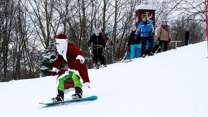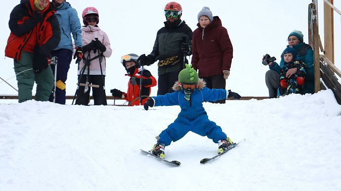 Целыми семьями сноубордисты и горнолыжники приезжают в Истру на склон горы Фавор, чтобы принять участие в первых любительских заездах нового, 2022 года. Возраст спортсменов не ограничен. А это значит, что катаются и дети, и взрослые.