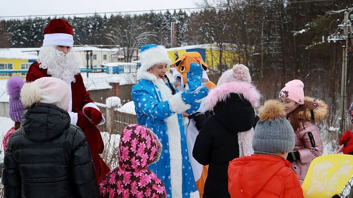 Дед Мороз и Снегурочка, сказочная Лиса и Почтальон Печкин поют, пляшут вместе с детьми, загадывают загадки, проводят забавные конкурсы. Атмосфера любви и добра витает в воздухе, все улыбаются, все рады. Сказочные герои поздравляют с Рождеством, раздают подарки.