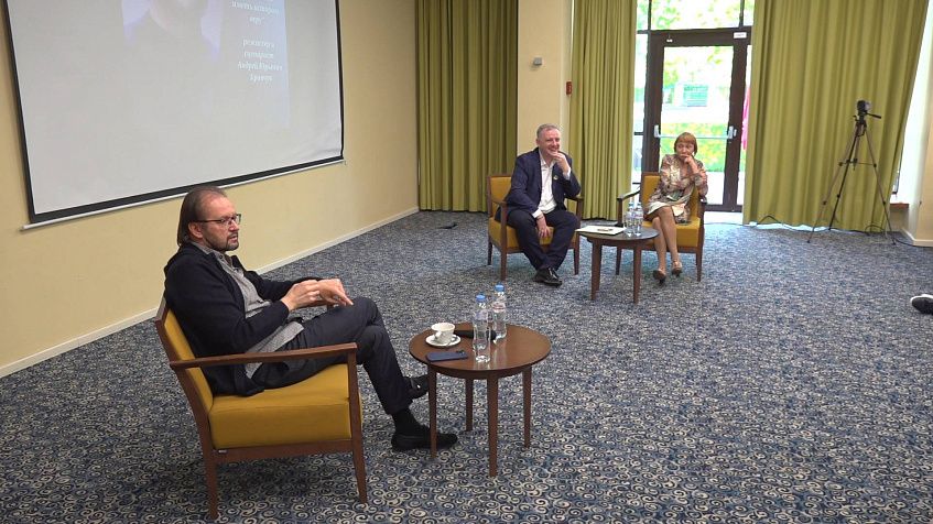 Общение прошло в формате public talk, беседу вёл директор гимназии Зураб Вахтангович Кананчев. Он также дал интервью нашему порталу, где рассказал об истории школы, особенностях работы с учениками, поведал почему гимназия носит имя одного из крупнейших русских поэтов XX века.