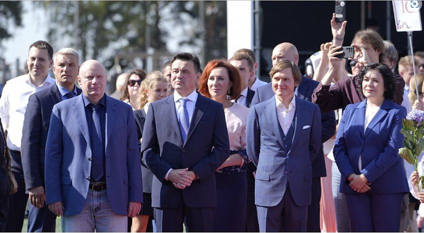 В торжественной линейке приняли участие внук Героя Соцтруда, ветерана Великой Отечественной войны Владимир Долгих и президент «Норникеля» Владимир Потанин, которые вместе с Андреем Воробьёвым закладывали первый камень в фундамент Технолицея в декабре 2021 года.