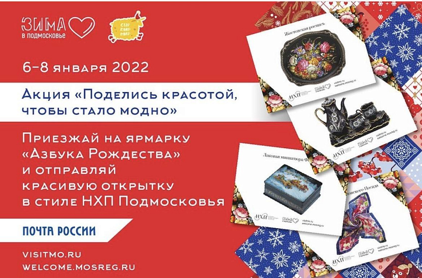 Московская область является ведущим в России регионом по развитию народных художественных промыслов. Поэтому, организаторы акции выпустят лимитированную серию почтовых открыток с изображением НХП.