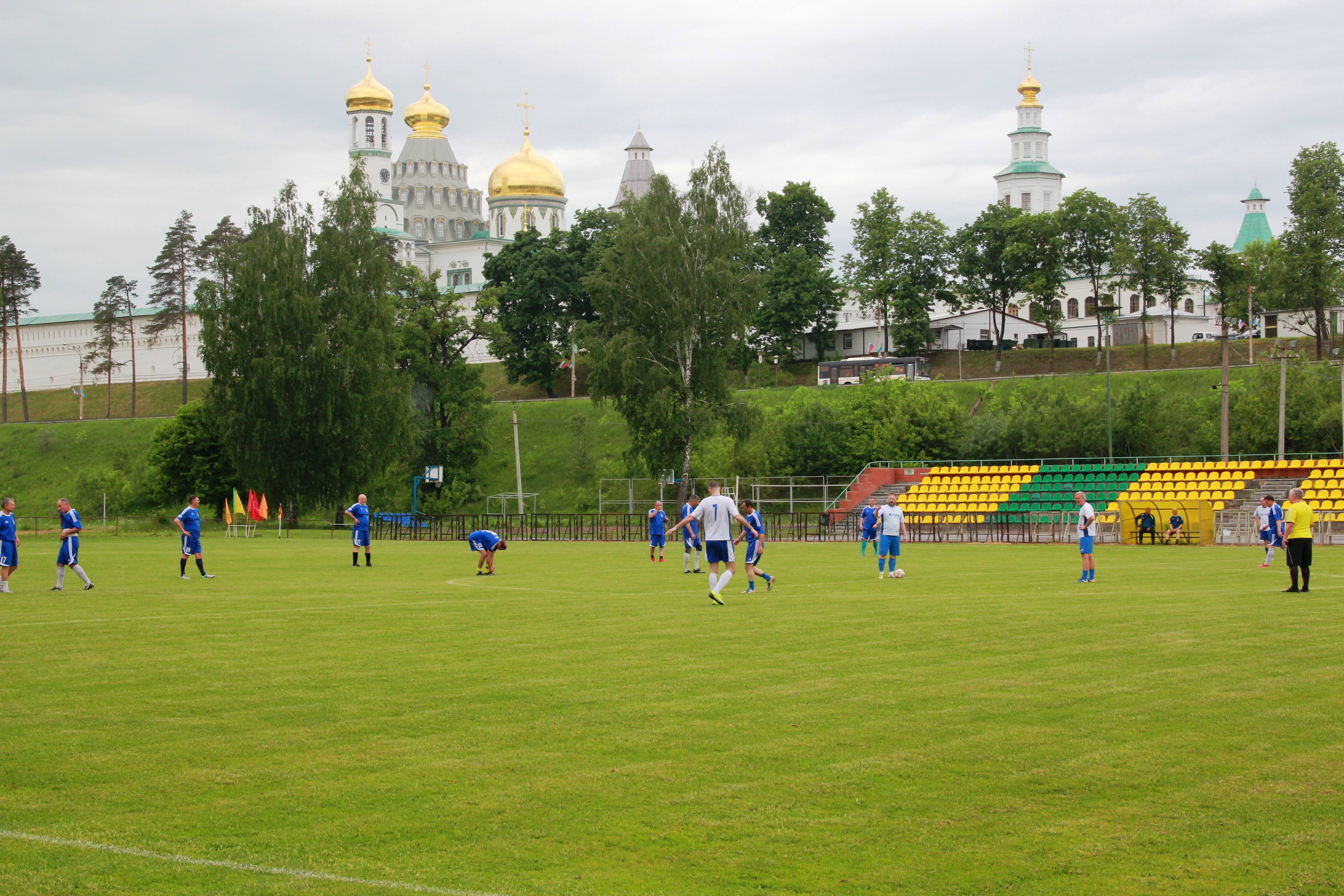 Сегодня на городском стадионе под стенами Ново-Иерусалимского монастыря состоялся традиционный товарищеский матч по футболу среди команд ветеранов г.о. Красногорск и г.о. Истра.