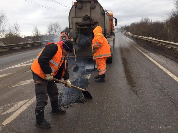 "Работы по устранению выявленных разрушений асфальтобетонного покрытия автомобильной дороги Волоколамское шоссе на участке 59+800 выполнены", — отчитывается начальник Истринского регионального управления автомобильных дорог Эдуард Дмитрив, прикладывая фотографии работ.