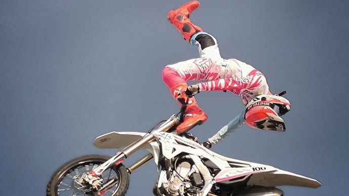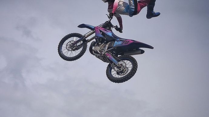 Особенно зрелищными стали прыжки с трамплина, когда мотоциклы взлетали на 10-метровую высоту, замирая в воздухе на доли секунды перед эффектным приземлением.