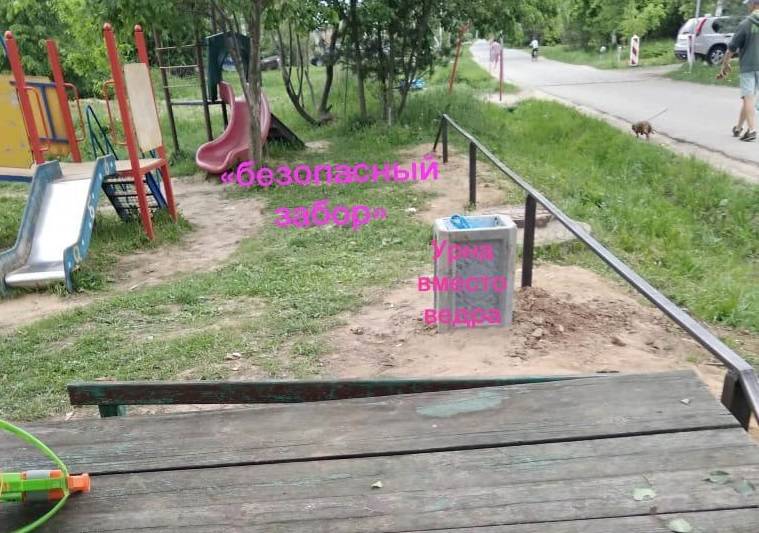 Лишь благодаря заметке местные смогли узнать о том, что для безопасности и комфорта им и их детям не хватало всего ничего: убрать ограждение из старых шин, заменив его невзрачным железным, установить мусорную урну и завезти в песочницу песок.