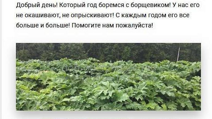 Справедливости ради отметим, что спустя сутки после обращения чиновники всё же провели рейдовый осмотр указанного участка, а по истечении ещё 5 дней борщевик Сосновского на указанной территории уничтожен.
