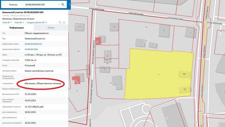 Изменён кадастровый номер вызвавшего много шума земельного участка в Истре, а также вид его разрешённого использования — под магазины и общественное питание.