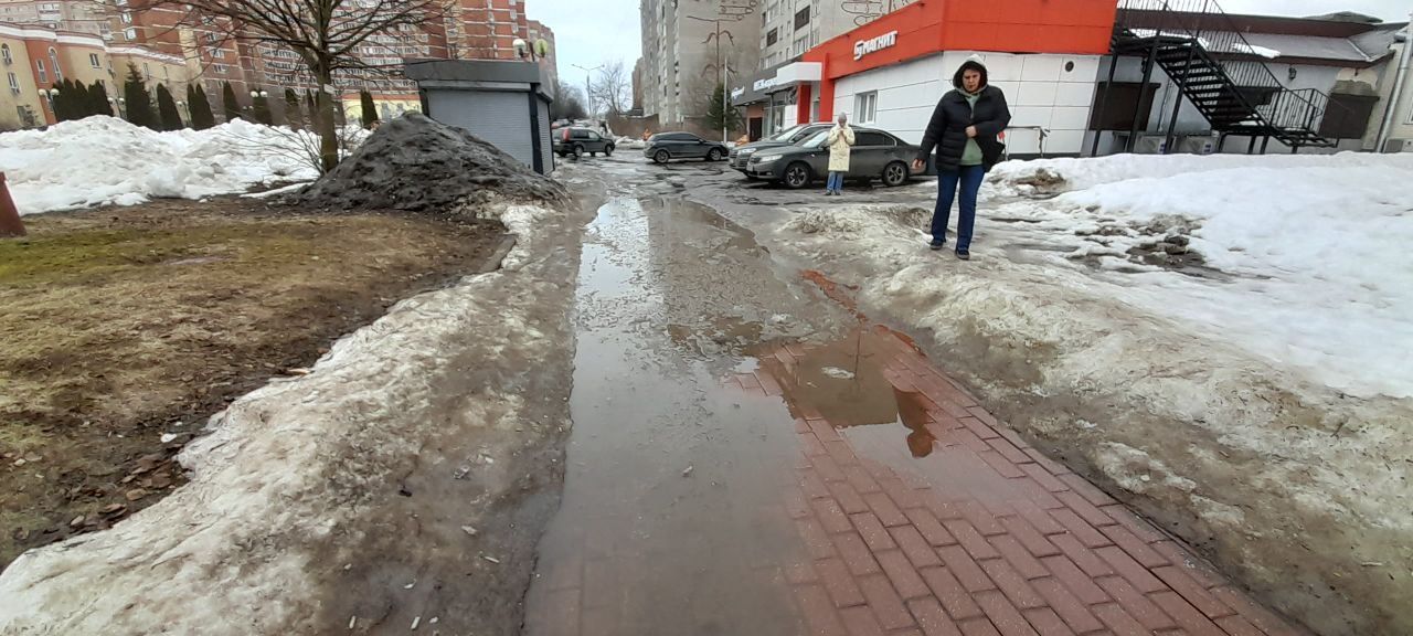 На пешеходном тротуаре на Адасько вновь огромная лужа. Старания коммунальщиков, на время разогнавших воду после предыдущих жалоб, сошли на нет.