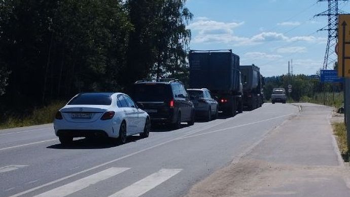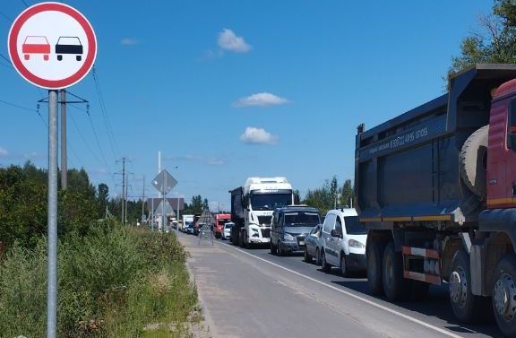 Жители нескольких деревень вынуждены ежедневно стоять в пробке из-за перекрытия моста в д. Мансурово. Сегодня на дороге ведутся ещё и ремонтные работы.