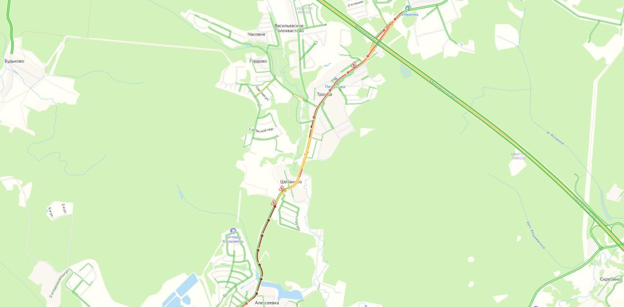 перекрыт с осени 2023 года. Транспортный поток через деревню Троица увеличен в разы!