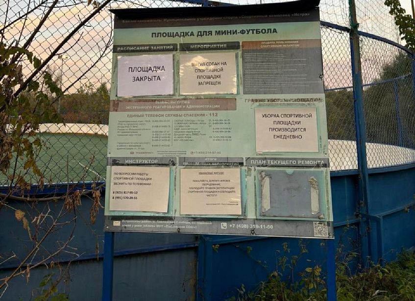 Отвечая на вопросы павлослободчан, чиновники Истры утверждают, что на основании акта обследования спортивного сооружения от 18.09.2024 г. эксплуатация спортивного объекта в настоящее время является небезопасной, поэтому принято решение о закрытии спортивного объекта во избежание травмоопасных ситуаций.