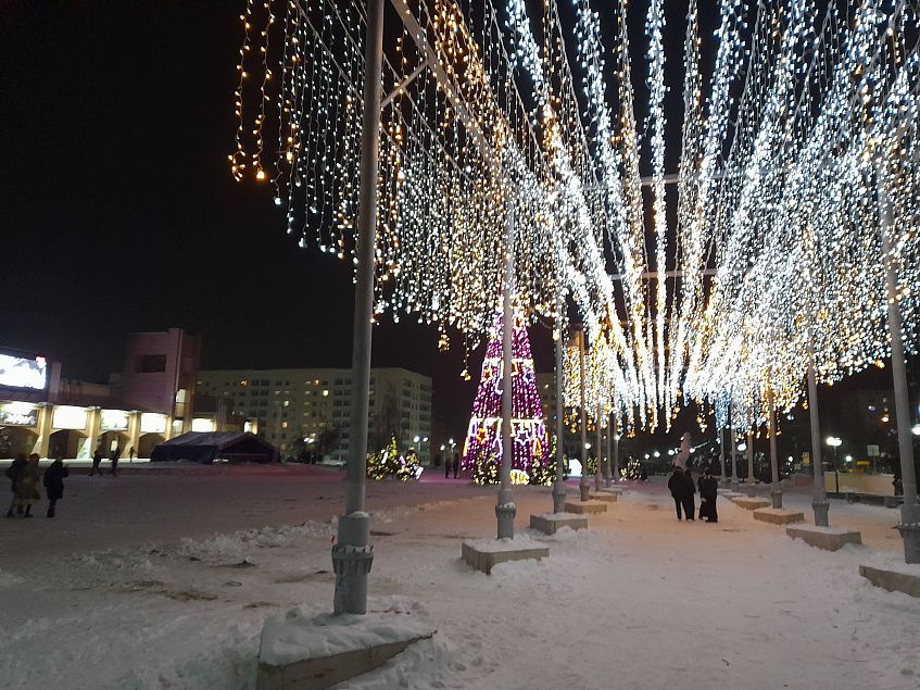 Вчера иллюминация впервые засветилась, создавая праздничную новогоднюю атмосферу для гуляющих.
