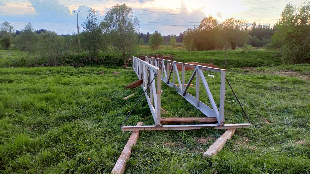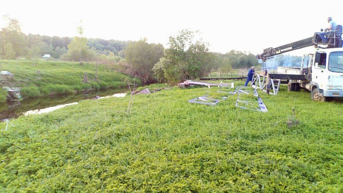 В мае работы по строительству моста начались. Прямо на месте рабочие сварили металлическую конструкцию и с большим трудом доставили к реке подъёмный кран, поскольку вопрос подъезда к деревне – ещё одна больная тема для скрябинцев.