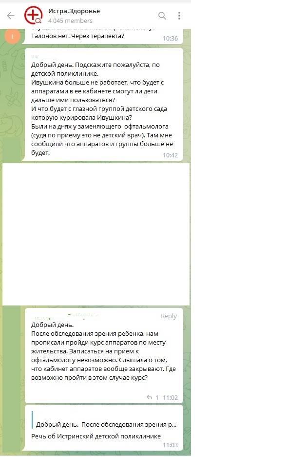 Вот уже несколько недель родители пишут в чат ТГ-канала "Истра.Здоровье" о невозможности записать ребёнка на осмотр к столь необходимому специалисту.