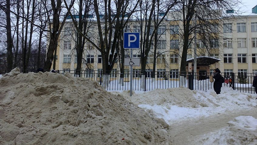 Огромная гора снега выросла, по словам жителей, неожиданно, загородив не только парковку, но и ограничив пешеходные подходы к школе № 2, расположенной поблизости.