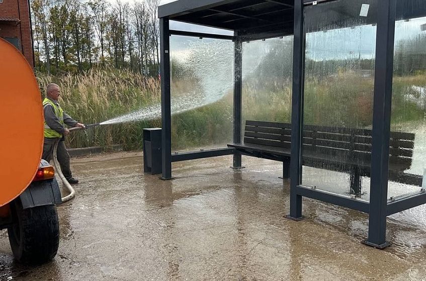 На днях мойка и уборка автобусной остановки была выполнена в микрорайоне «Малая Истра». «А остальные павильоны?», — недоумевают горожане.