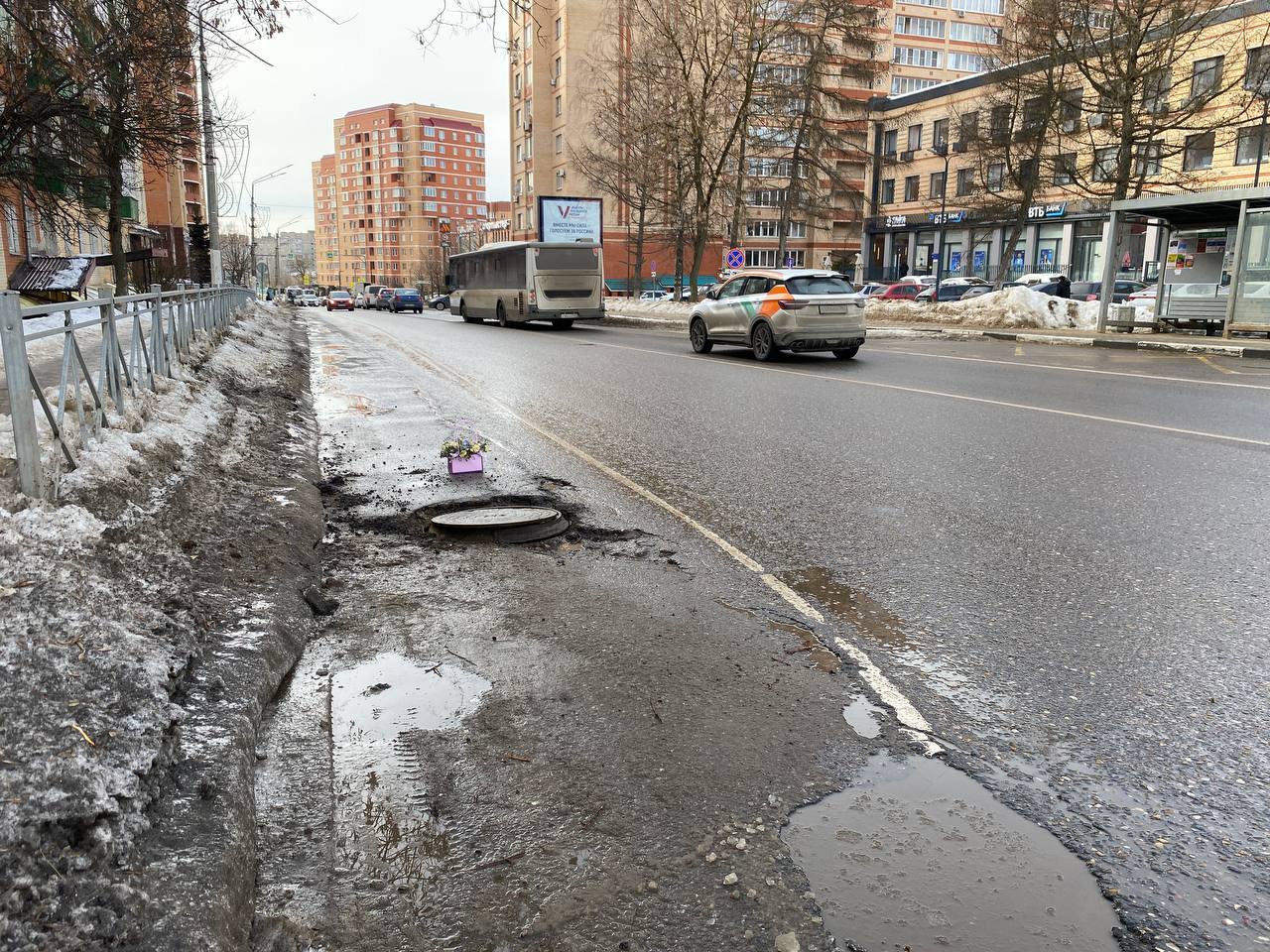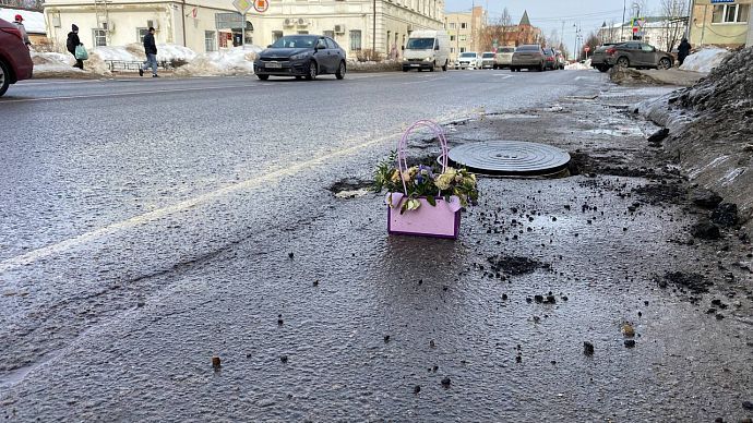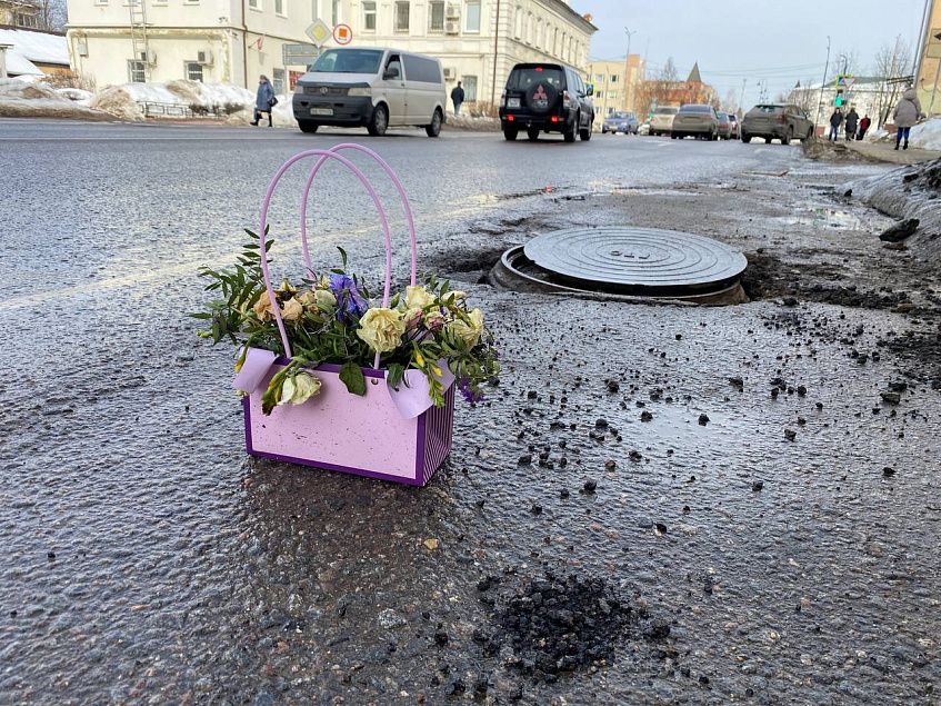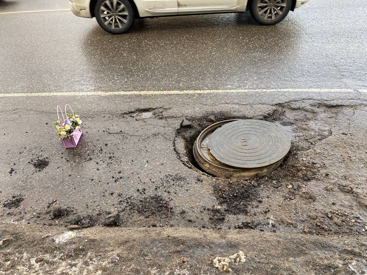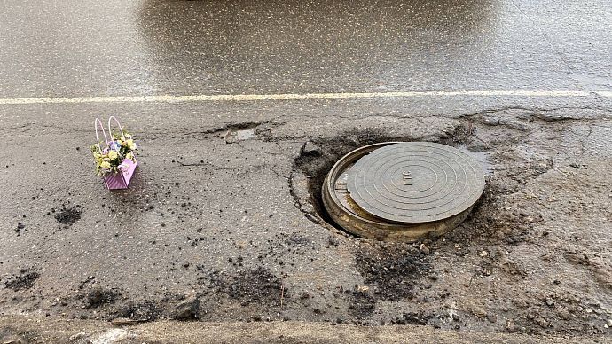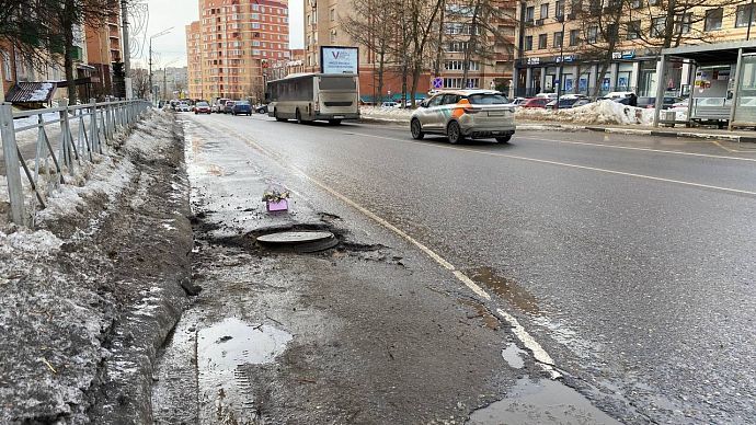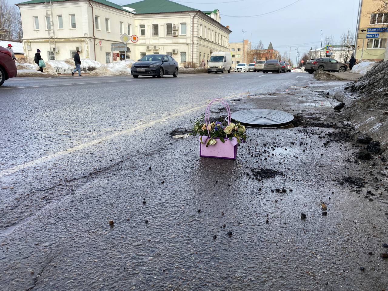 Истринцы возложили цветы... к яме на дороге
