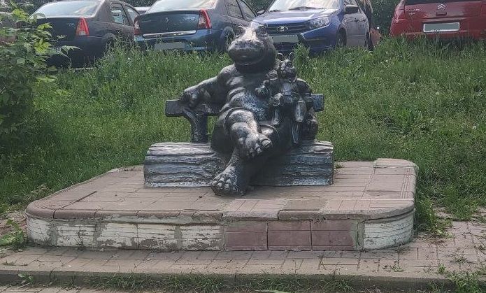 Памятник был подарен городу местной администрацией еще в июле 2007 года. Скульптором данной работы является знаменитый И. Савин. В апреле 2010 года «бегемот» был варварски распилен. Скорее всего, его хотели сдать на цветмет, но вандалов спугнули.