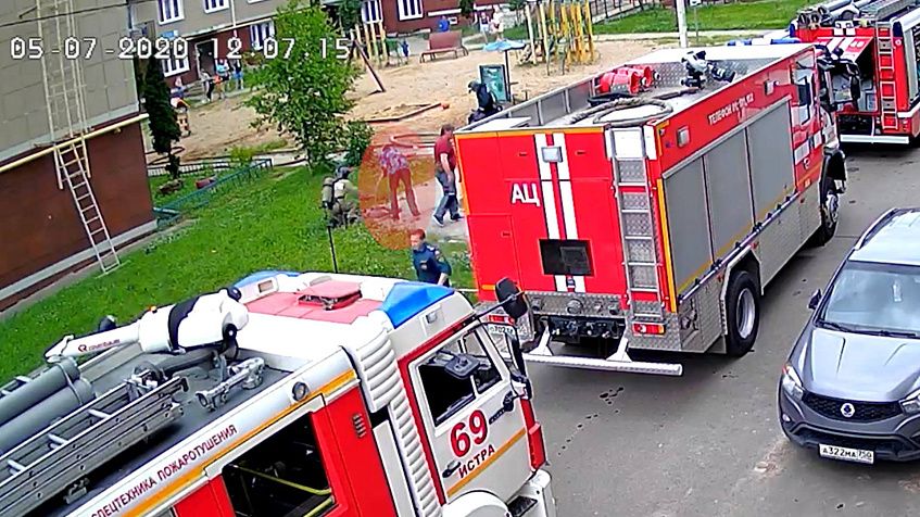 Мужчина, который помогал пожарным развернуть рукав, — это сотрудник управляющей компании «Восток Истра» — уверяют жители дома. Сама УК эту информацию опровергает.