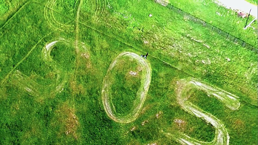 Над стадионом идут на посадку самолёты, прибывающие в аэропорт «Шереметьево». На чемпионат мира прилетают иностранные болельщики. Антон сделал неординарный клич о помощи: на заросшей высокой травой территории выкосил слово «SOS».
