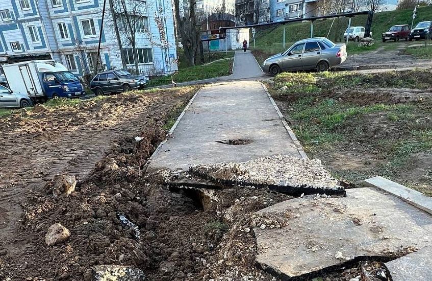 Что же касается ремонтных работ, под предлогом которых, копают то тут, то там. Добрались рабочие и до пешеходных дорог. В частности, полностью разрушенной оказался тротуар, ведущий к одному из детских садов посёлка, а также к нескольким многоквартирным домам. Место работ никак не обозначили, ввиду сложившейся опасной обстановки, глебовчане вот уже неделю просят устранить опасную ситуацию, но ответ от представителей администрации дождались лишь сегодня. "Планируем на следующей неделе, после усадки грунта", - лаконично пояснили в чате. К слову, данную пешеходную дорожку построили лишь год назад, после многочисленных обращений жителей в администрацию.