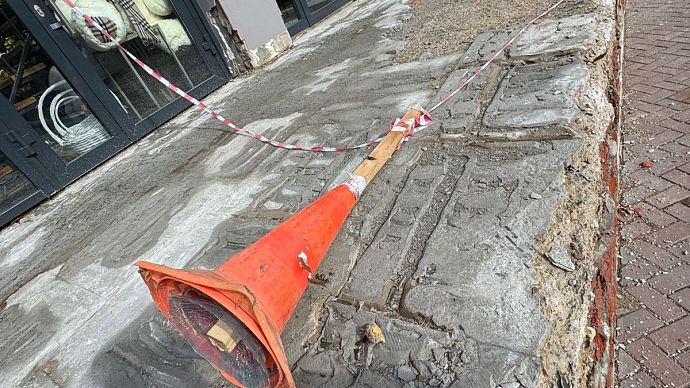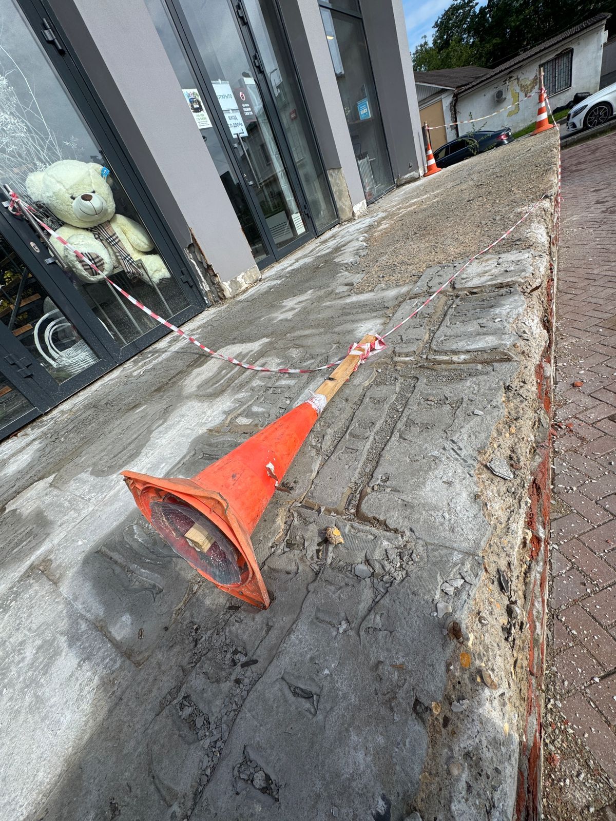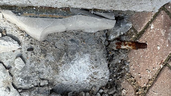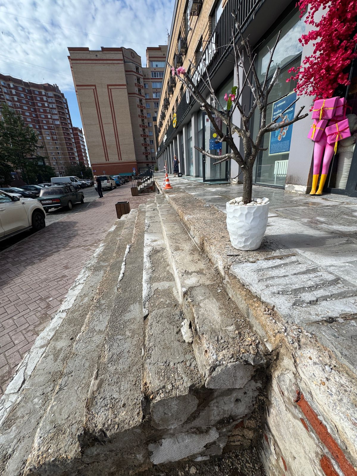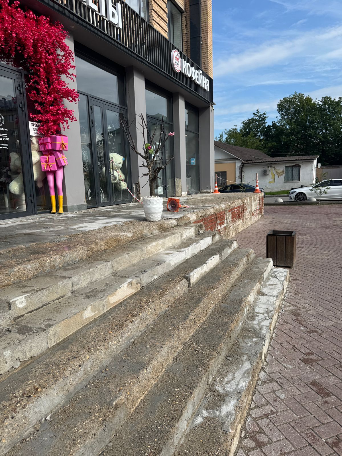 Однако лестничный марш здесь долго не продержался. Современные стройматериалы рассыпались на глазах удивлённых посетителей ещё в феврале. После обращения посетителей, которые едва не получили травмы, спускаясь по аварийным ступеням, с собственником нежилого здания была проведена беседа на предмет определения и согласования сроков проведения ремонтных работ.