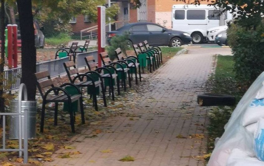 В частности, горожане задались вопросом: с какой целью на достаточно небольшой территории были установлены в ряд около десятка скамеек? Причём одна из них по странному капризу исполнителей оказалась внутри детской песочницы.