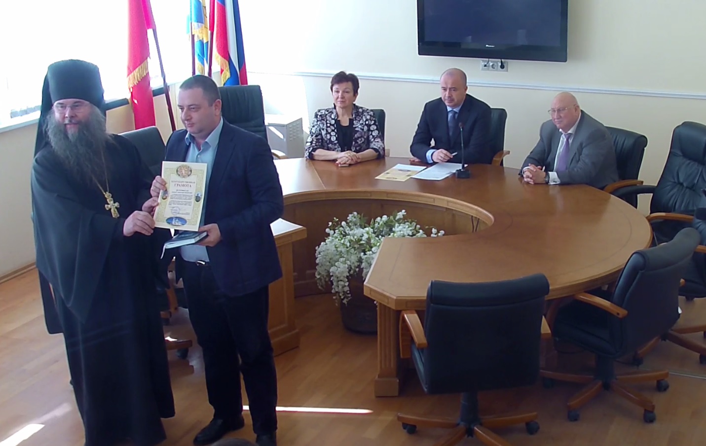 Также в ходе планового совещания наместником Воскресенского Ново-Иерусалимского мужского монастыря архимандритом Феофилактом были вручены благодарственные грамоты за помощь в организации и проведении праздника Крещения Господня. Благодарность получили руководитель администрации г.о. Истра Андрей Дунаев и его профильные заместители Александр Южный, Александр Айрапетов, Александр Синельщиков и Ирина Юлынцева. Около 50 благодарственных грамот были вручены накануне рабочим, которые принимали непосредственное участие в организации мероприятия.