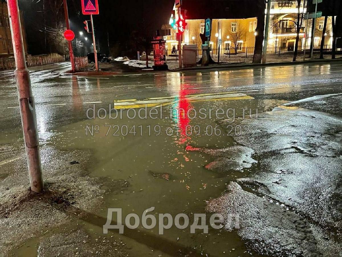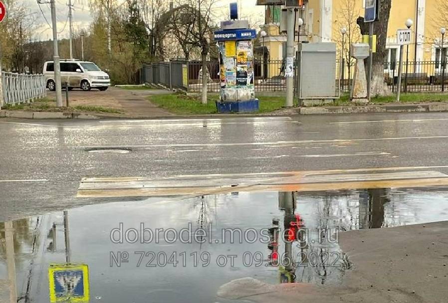 Всё дело в том, что пешеходный переход на пересечении улиц Ленина и Советской в Истре оказывается наполовину в воде: летом буквально после каждого, даже совсем небольшого дождя, в осенне-зимний период — при каждом таянии снега.