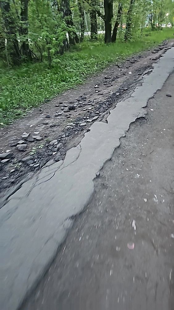 «Не говоря уже про мам с колясками. Дороги как таковой просто нет, асфальт весь разбит, куски валяются по сторонам вдоль тропки. После дождя всё это превращается в грязное месиво. Дети в школу идут через эту грязь, соответственно, вся одежда в грязи. Торопясь в школу, поскальзываются и падают. Осенью сын не раз приходил весь в грязи — падал по дороге в школу.