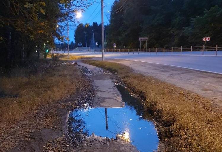 Пешеходные дорожки в первую очередь волнуют местное население. По их словам, уборка дороги давно не помогает, т. к. из-за отсутствия рядом с ней канавы здесь вновь и вновь образовываются грязные лужи. "Из-за этого дорогой пользоваться становится просто невозможно", — уточняют они.
