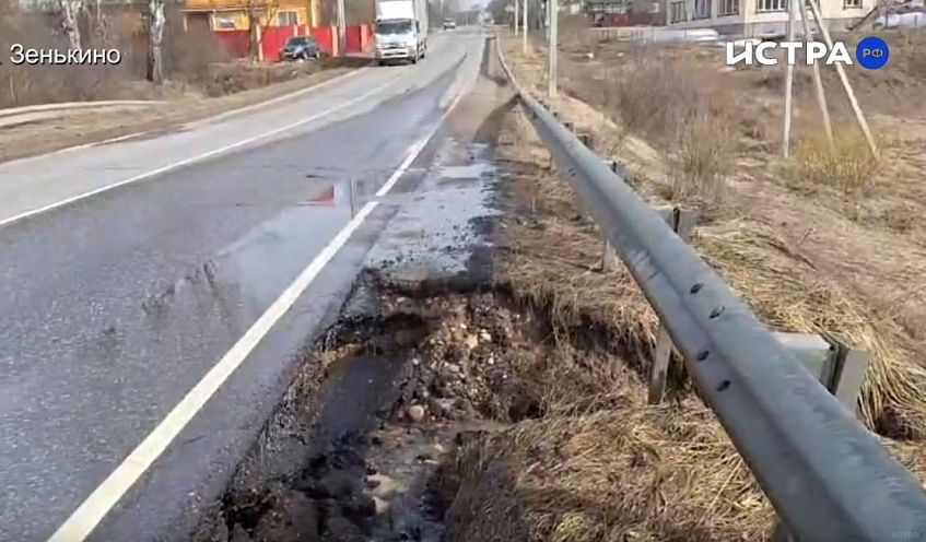 По всей видимости, здесь «поработали» талые воды, которые бегут с проезжей части в низину. Пока неизвестно, грозит ли это чем-то для покрытия и в целом дороги.