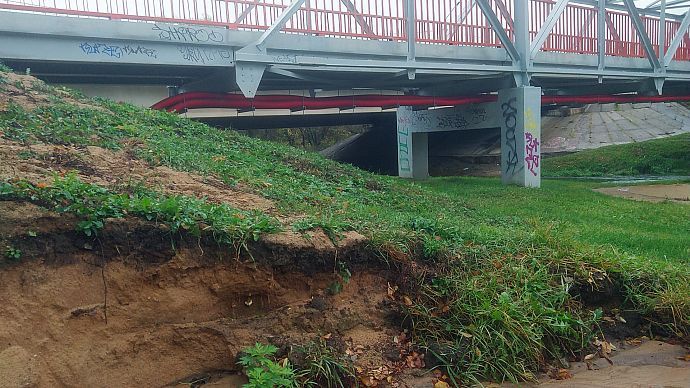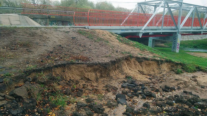 Разрушение насыпи, видимо, произошло после обильных осадков. Горожане переживают, что после зимы, в период весеннего половодья, пешеходная дорожка может и вовсе оказаться в реке.
