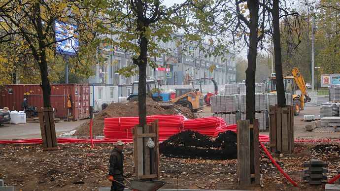 Истринцам приходится обходить обещанное благоустройство в центре города опасным путём