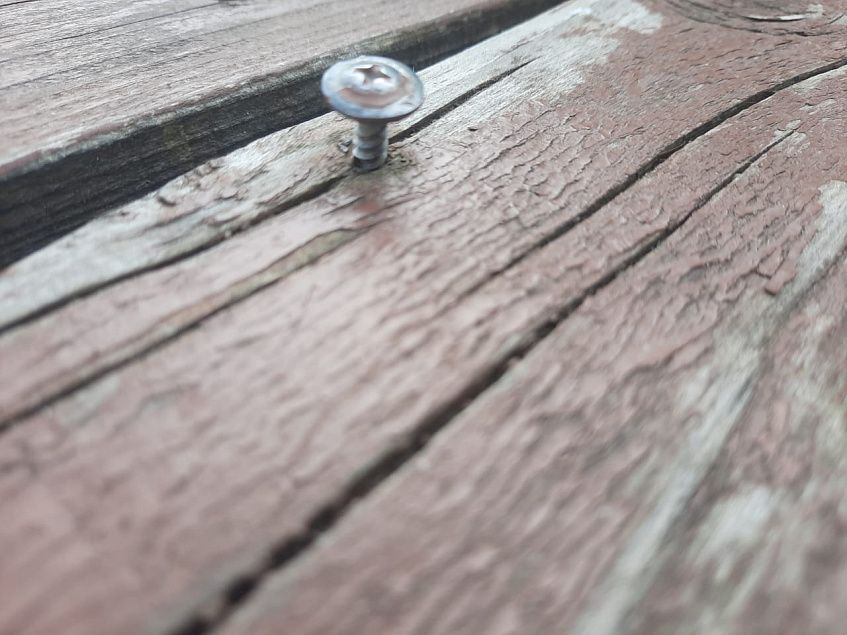 Прямо из деревянных дощечек торчат саморезы.