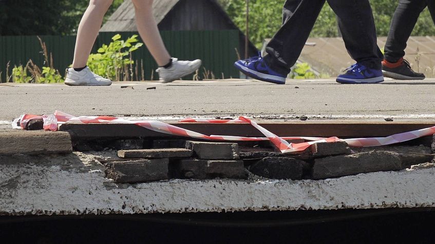 На железнодорожную пассажирскую платформу мы приехали после размещения поста в социальных сетях. Жители посёлка сетовали на то, что асфальтовое покрытие разрушается, а деревянные настилы, которые снизу подпёрты деревянными балками, выглядят очень ненадёжными.